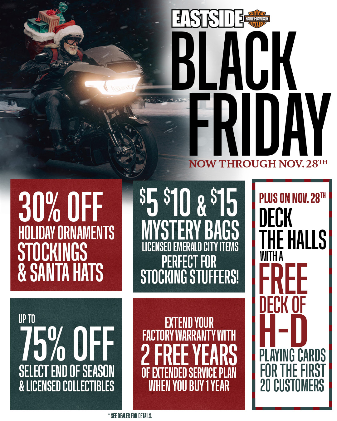 NOW THROUGH DEC 31ST 2025, GET A FREE GIFT WHEN YOU PURCHASE $300 or more on Harley-Davidson MotorClothes, Genuine Motor Parts & Accessories, Screamin’ Eagle parts, & official licensed products!
